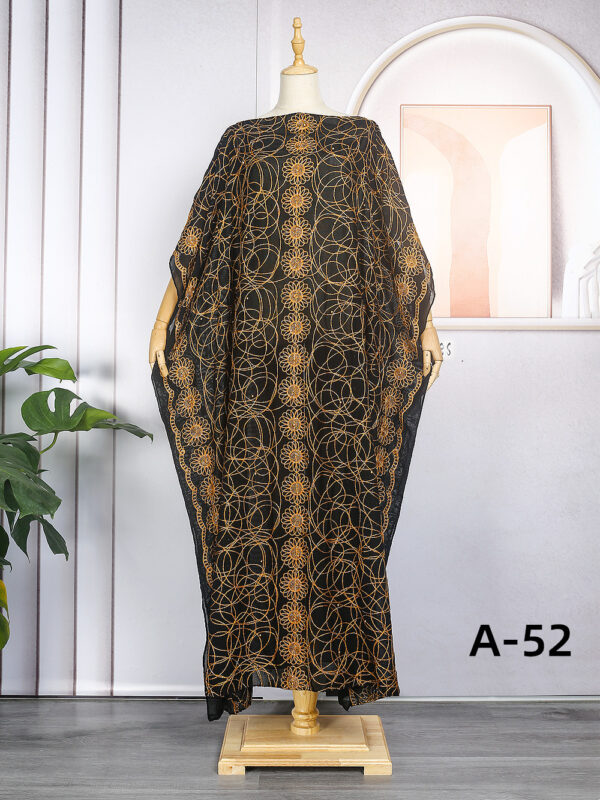 Step into effortless elegance with our stunning Style A-52 Kaftan, a graceful blend of tradition and modern design. Crafted from soft, breathable fabric in a rich black hue, this piece features exquisite gold embroidery in intricate floral and circular patterns. The vertical embroidered panels elongate the silhouette, while the loose, flowing fit offers ultimate comfort and versatility. Ideal for festive occasions, evening gatherings, or sophisticated loungewear, this kaftan brings timeless charm and luxurious flair to your wardrobe.