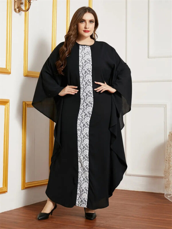 Elevate your modest fashion wardrobe with this stunning Elegant Black Abaya featuring a central white lace panel. Designed for the modern woman who values both tradition and style, this abaya showcases flowing batwing sleeves for a graceful silhouette and a flattering fit for all body types.
