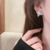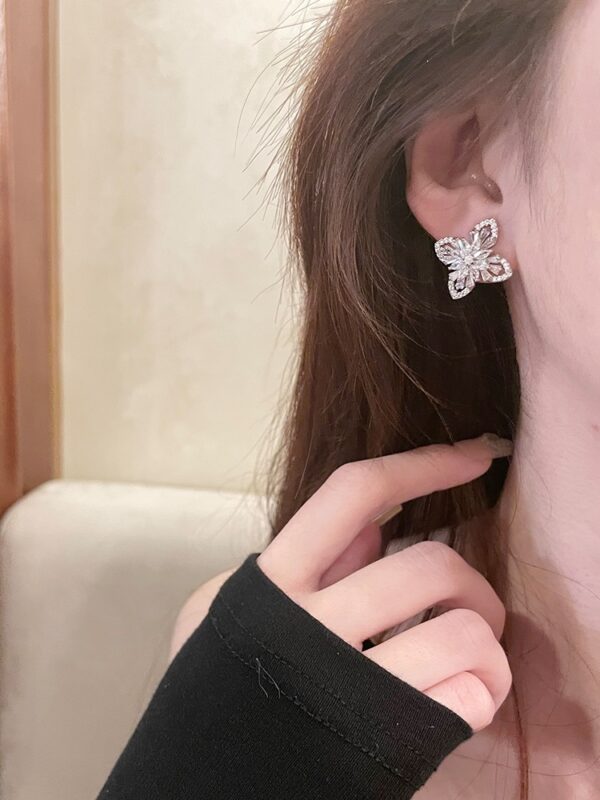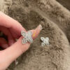 Add a touch of delicate charm to your look with these Elegant Crystal Butterfly Stud Earrings. Crafted with precision, each earring features a beautifully symmetrical butterfly design made from marquise and teardrop-shaped crystals. The sparkling stones are delicately set in a high-shine silver-tone frame, enhanced with a halo of micro-pavé rhinestones for extra brilliance.