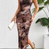 Turn heads effortlessly with this elegant marble-print bodycon midi dress. Designed to hug your curves beautifully, this sleeveless dress features a flattering fitted waist and a stylish side slit that adds just the right touch of allure. Made from soft, stretchy fabric, it’s comfortable, breathable, and perfect for both day and night wear.