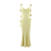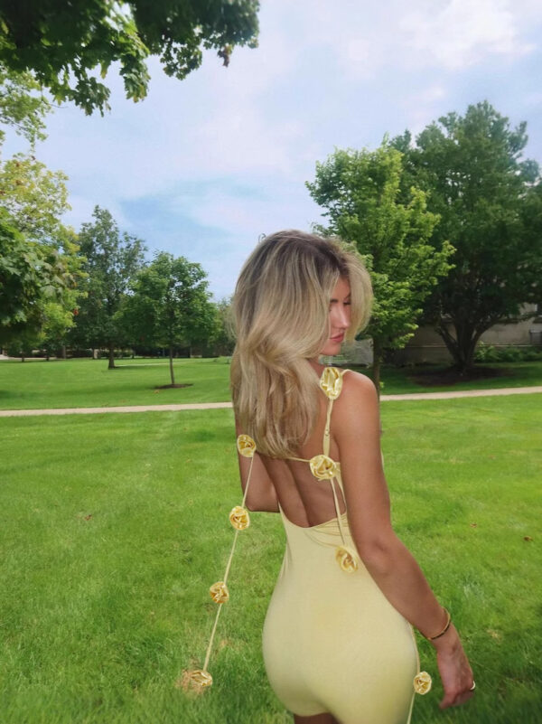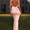 Turn every head in the room with our breathtaking Floral Accent Backless Gown. Featuring a figure-hugging silhouette, this floor-length dress is crafted with delicate flower detailing along adjustable straps that cascade down an alluring open back. Perfect for formal events, romantic evenings, or special occasions, this gown combines elegance and bold design for a truly unforgettable look.