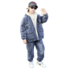Give your child the perfect blend of warmth, style, and confidence with this trendy winter denim outfit. Designed for comfort and built for cold weather, this set features a thick fleece-lined hoodie jacket paired with matching cargo-style denim trousers—making it the ultimate streetwear look for boys.