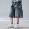 Washed denim shorts with oversized pockets