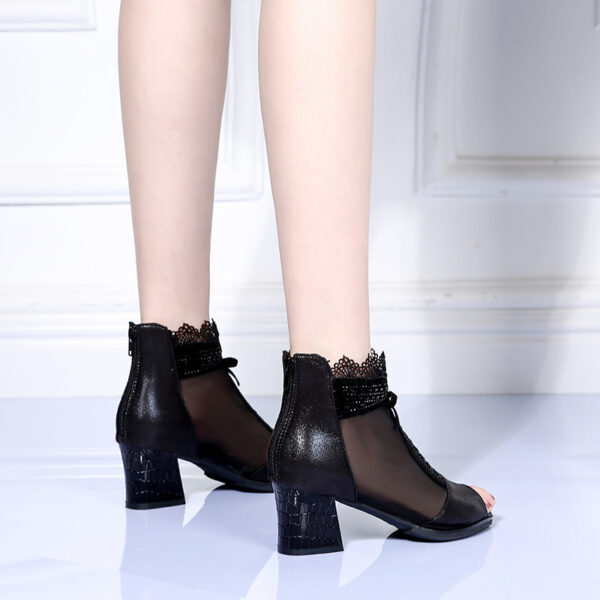 Ideal for both casual outings and dressy occasions, the Luna Lace Mesh Ankle Boots pair beautifully with dresses, skirts, or tailored pants.