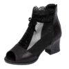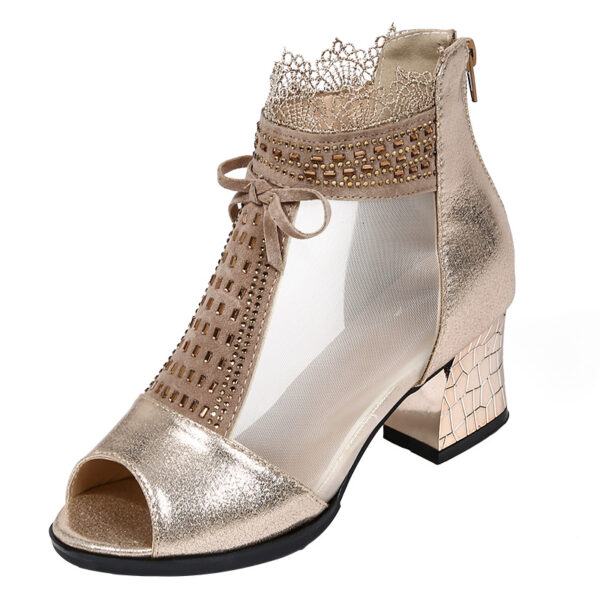 Step into elegance and comfort with our Luna Lace Mesh Ankle Boots – the perfect blend of sophistication and breathability. Designed with a chic mesh panel and shimmering rhinestone embellishments, these ankle boots bring a fashionable twist to classic open-toe styling. The mid-height block heel with a unique cracked mosaic finish ensures stability while adding a touch of glamour to every step.
