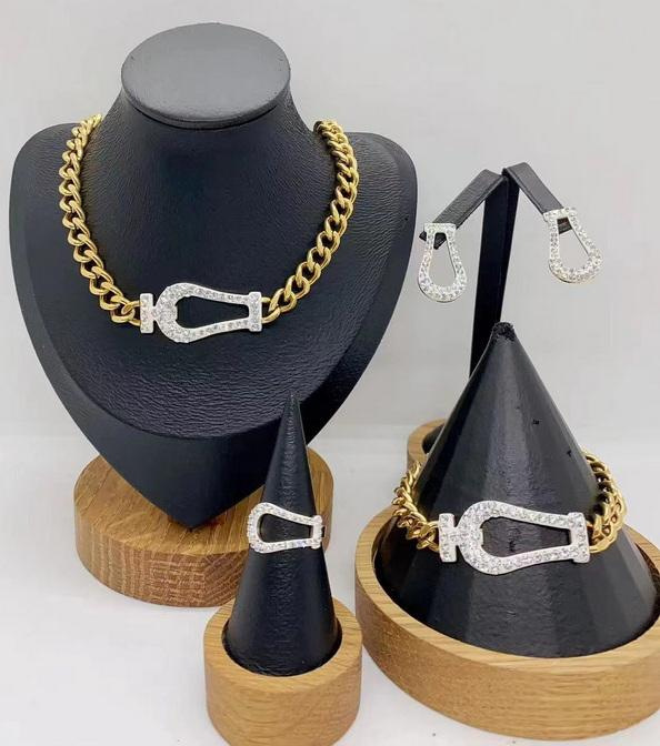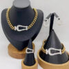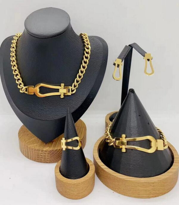 Make a bold statement with our luxury jewelry set, featuring a modern, industrial-chic design. This exclusive set includes a matching necklace, bracelet, ring, and earrings – perfectly crafted for those who love to stand out with elegance and power.