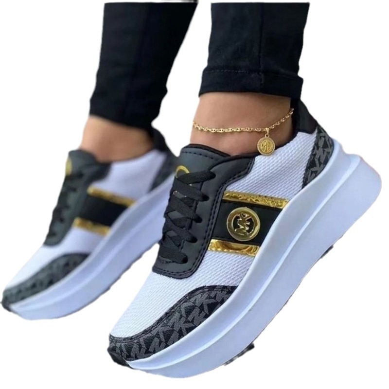 Step into style and comfort with our Luxury Monogram Platform Sneakers, where fashion meets function. These designer-inspired sneakers feature a bold yet elegant aesthetic with a unique mix of breathable mesh, faux leather overlays, and gold metallic accents. Available in four chic color combinations—Beige Gold, Mocha Brown, Classic Black, and Rose Pink—each pair adds a touch of sophistication to any outfit.
