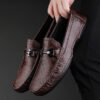 Step into timeless sophistication with our Men’s Classic Slip-On Loafers. Crafted for comfort and style, these loafers are designed with a sleek leather-like finish and accented with a polished metal bit detail for a refined touch.