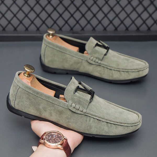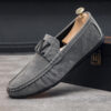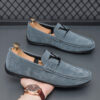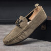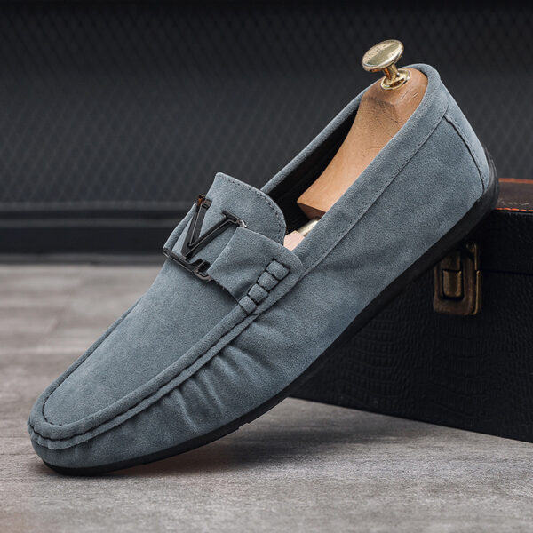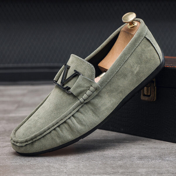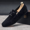 Step into timeless elegance and unmatched comfort with our Men’s Classic Suede Loafers. Crafted from premium-quality suede, these loafers exude a sophisticated charm that seamlessly transitions from casual outings to refined occasions. The signature metal “V” emblem on the strap adds a bold yet tasteful accent, symbolizing a blend of luxury and contemporary design.
