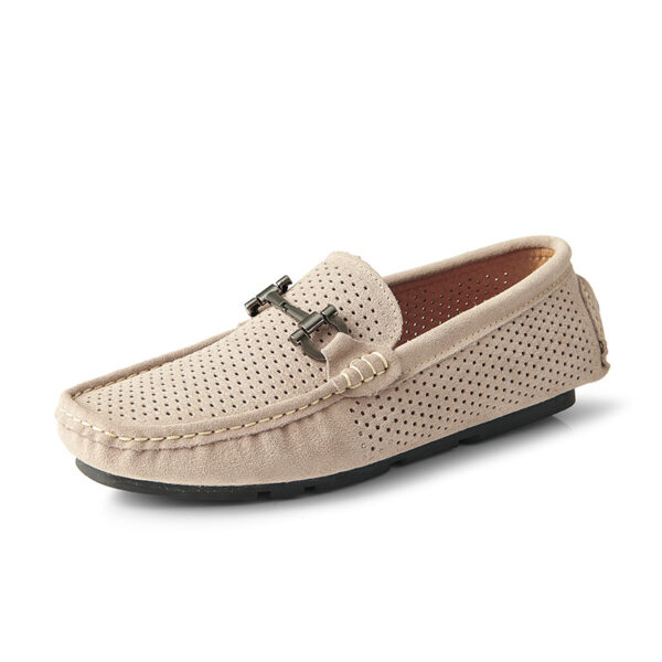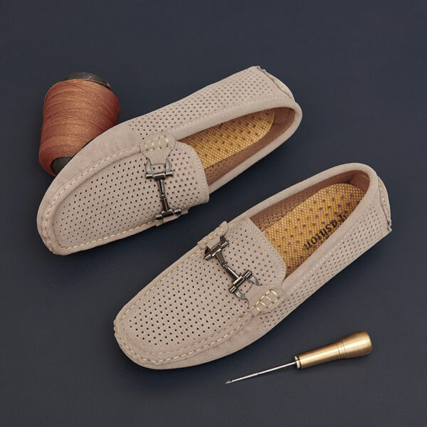 Elevate your style with these luxurious perforated loafers, crafted for the modern man who values both comfort and sophistication. These loafers feature a premium suede upper with a breathable perforated design, ensuring all-day comfort while keeping your feet cool. The metallic buckle detail adds a touch of elegance, making them perfect for both casual and semi-formal occasions.