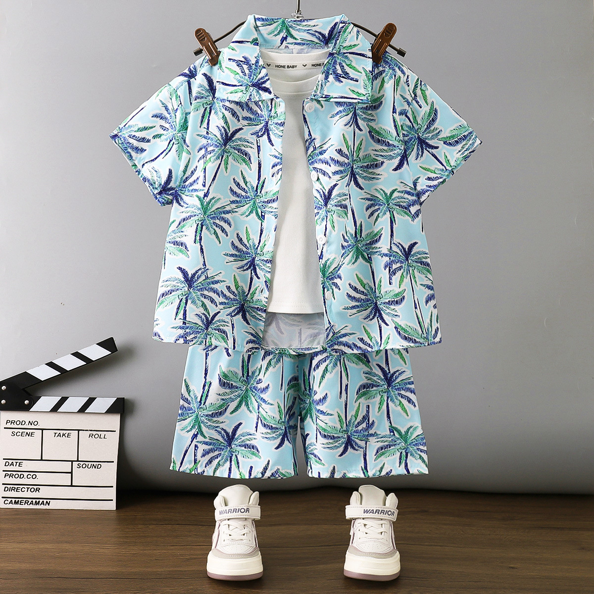 Get your little one summer-ready with our Tropical Palm Tree Print Summer Set for Boys – the perfect blend of comfort and style! This vibrant 3-piece set includes a breezy short-sleeve button-up shirt, matching shorts, and a soft white inner tank top. Made from lightweight, breathable fabric, it’s ideal for beach days, family outings, or casual play.