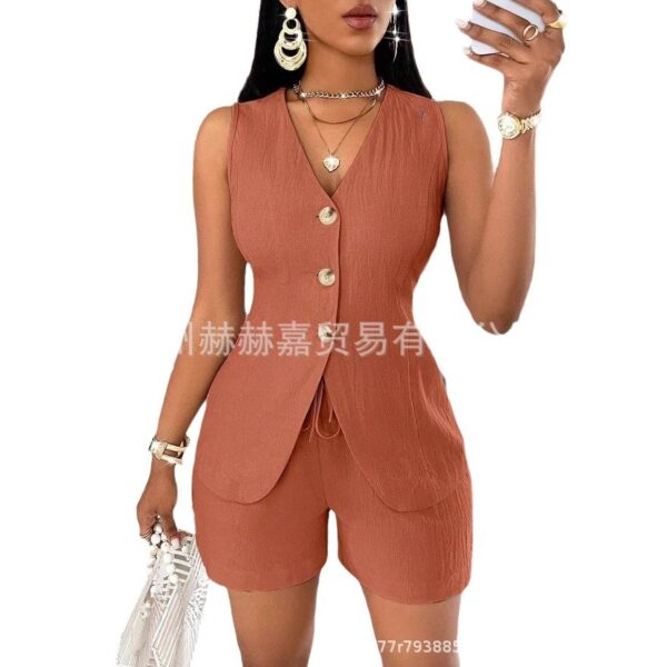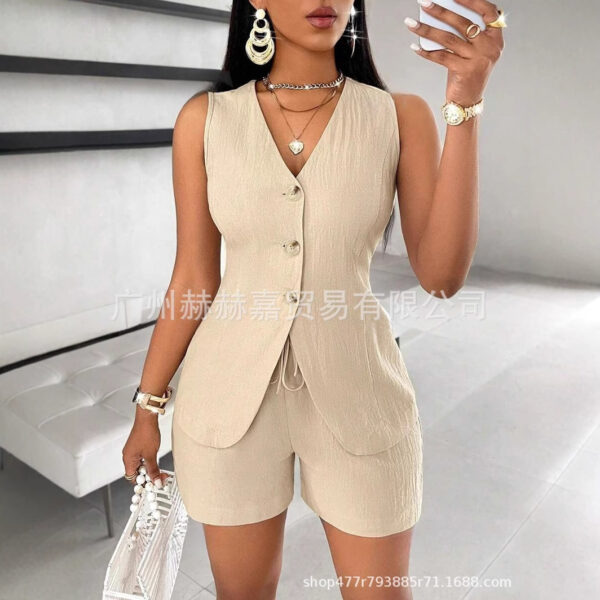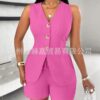Stylish Design: Tailored sleeveless top with statement buttons and a flattering V-neckline.