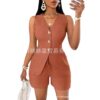 Style meets comfort in our must-have Sleeveless Button-Up Short Set!
